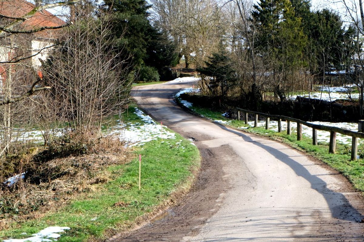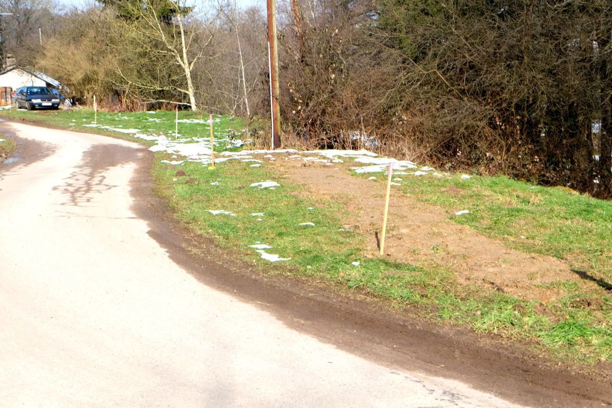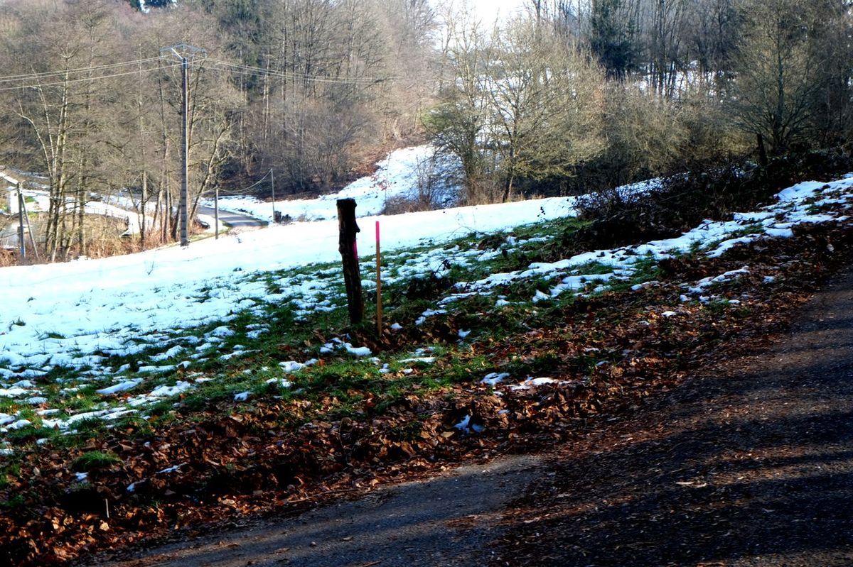 Depuis un mois Mr René Husson du cabinet de géomètres Jacques de Padoux 88 pose les bornes qui vont servir à attribuer les parcelles de terrain autour de chaque maison et celles qui marquent les emplacements des chemins.