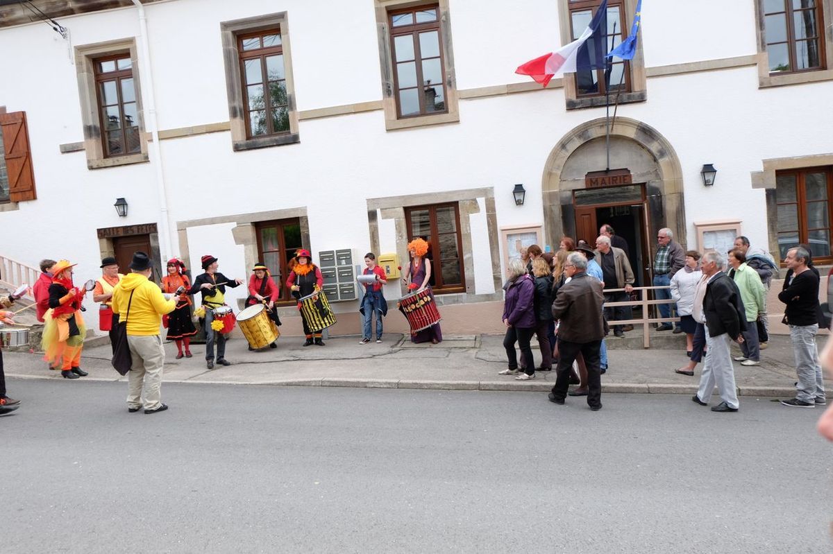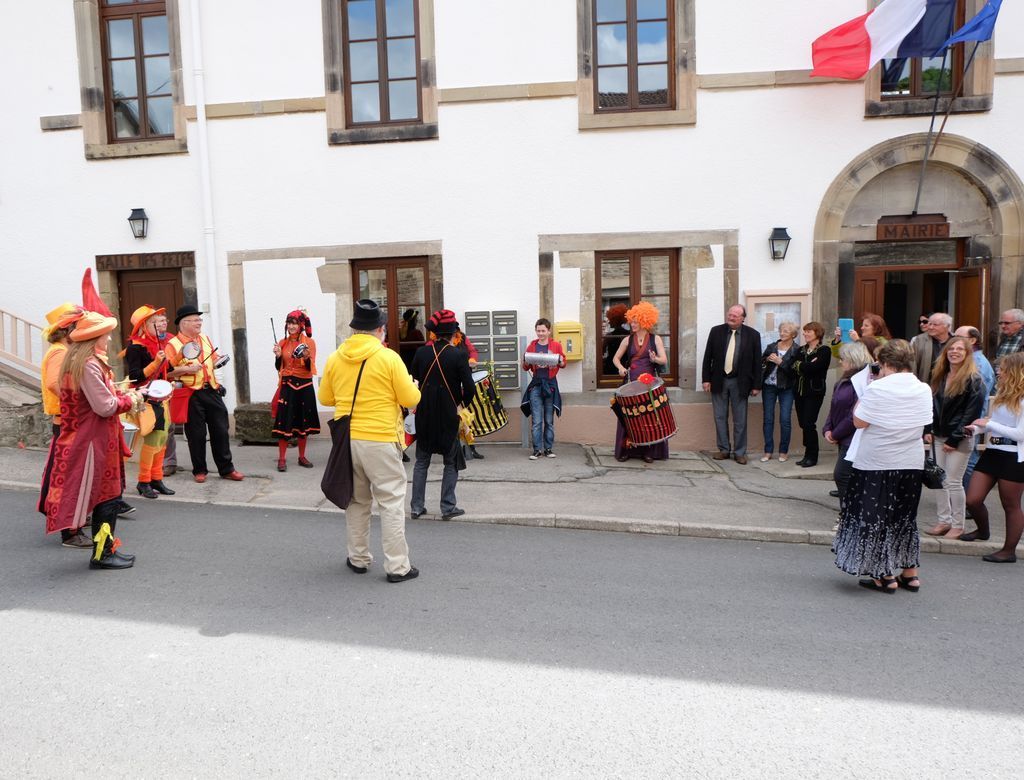 A la sortie de la mairie, accompagnés par le groupe de musiciens et danseurs brésiliens, tous se dirigèrent vers la Guinguette où les attendait un vin d'honneur.