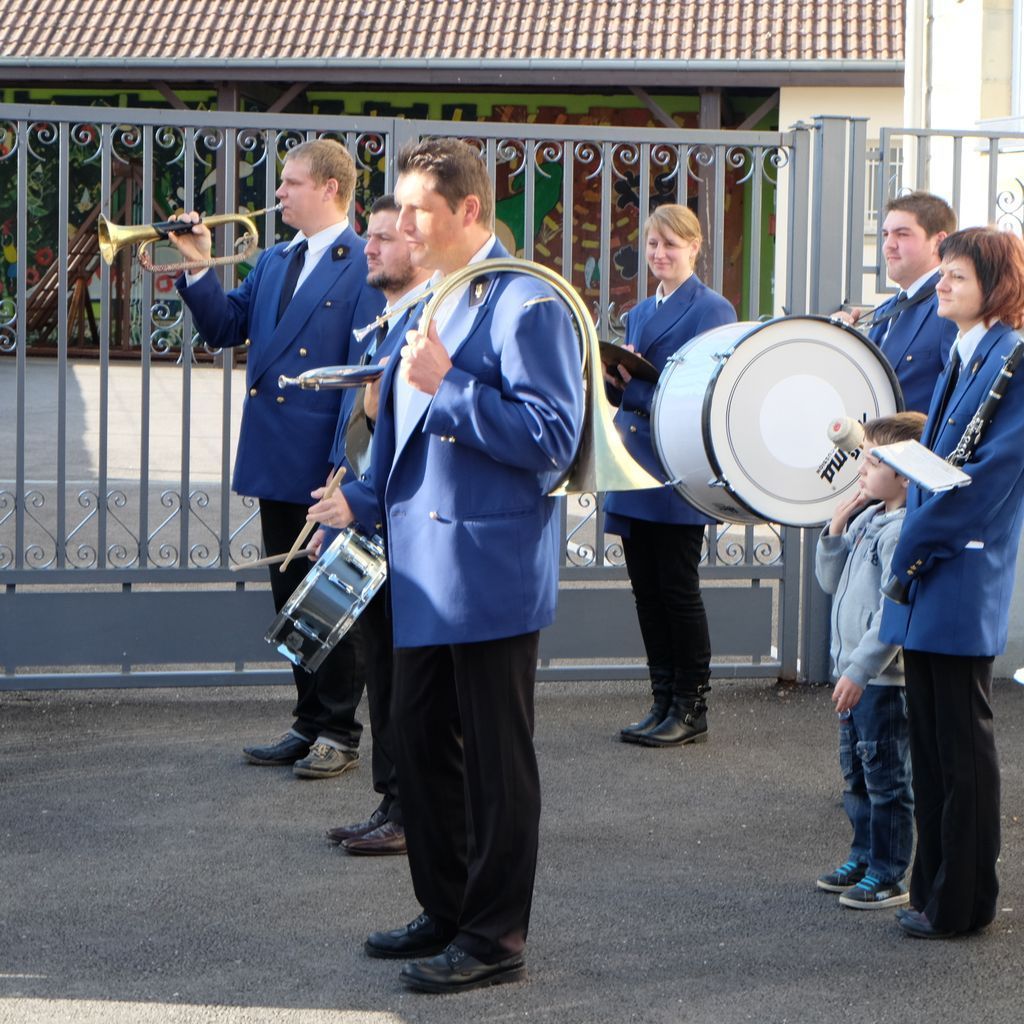 Toute l'assemblée a ensuite suivie la clique qui joua plusieurs morceaux devant la salle des Fêtes.