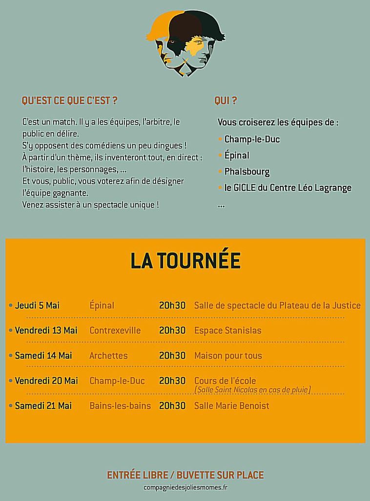 Théâtre : Match d'improvisation à la Salle Marie Benoist de Bains-les-Bains le samedi 21 mai 2016 à 20h30.
