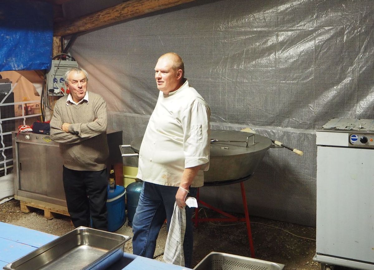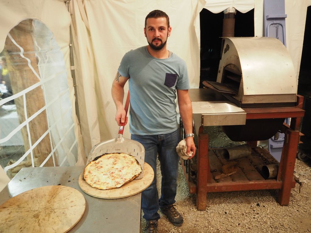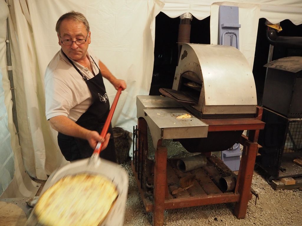 Pour en revenir à cette Fête patronale, nous avons retrouvé notre duo de choc pour faire cuire les tartes flambées. Comme le dit souvent Carole " On ne change pas une équipe qui gagne." Malheureusement pour le photographe, ils vont trop vite, les clichés sont tous flous. C'est seulement pour la toute dernière pièce qu'ils ont accepté de prendre la pose. Heureusement que les verres de bières étaient remplis plus lentement pour ne pas faire trop de mousse.