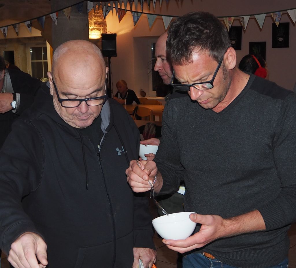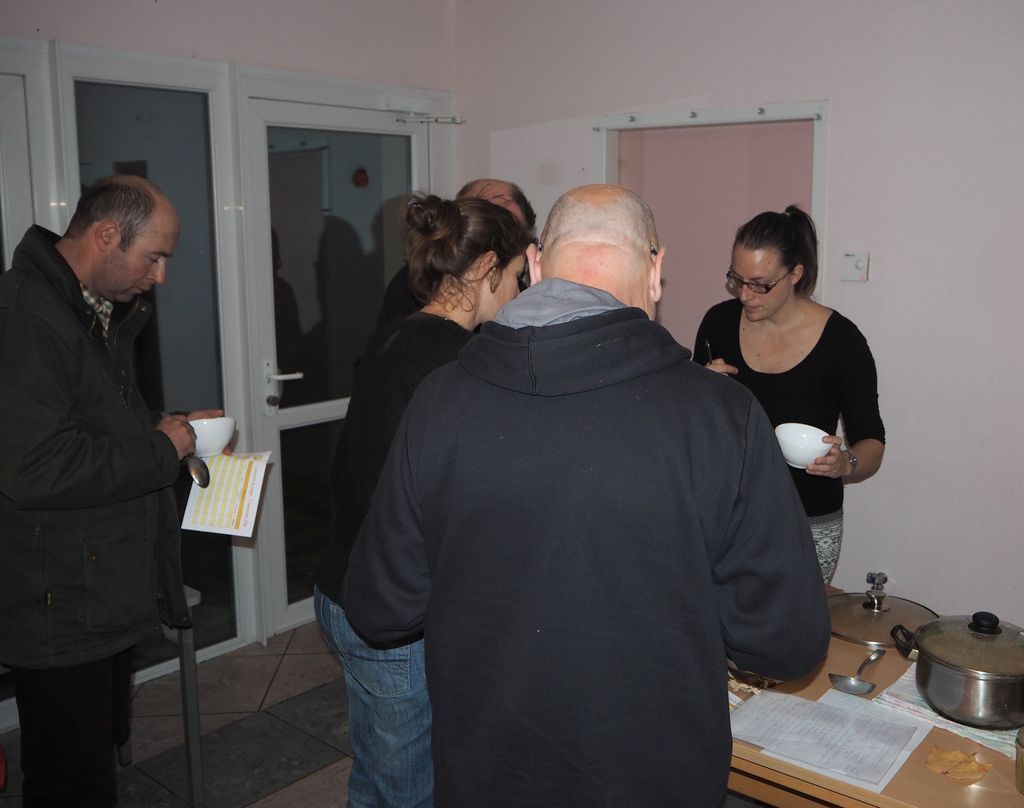 Les membres du jury furent mis à rude épreuve. Une dizaine de fois de suite, ils durent prendre un échantillon de chaque préparation et le déguster. Là pas de faux semblant. Il s'agissait bien d'une dégustation. Il aurait été dommage, impensable, scandaleux même, de pas avaler ces si bonnes soupes. Pour ma part, même si mon bol était mieux rempli, je ne les ai pas suivi sur ce terrain au cours du repas partagé. Trois échantillons ont suffi pour me lester.