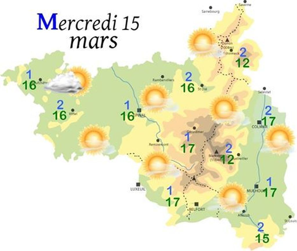 DEMAIN MERCREDI 15 MARS : BEAU TEMPS, NUANCÉ VERS NEUFCHATEAU