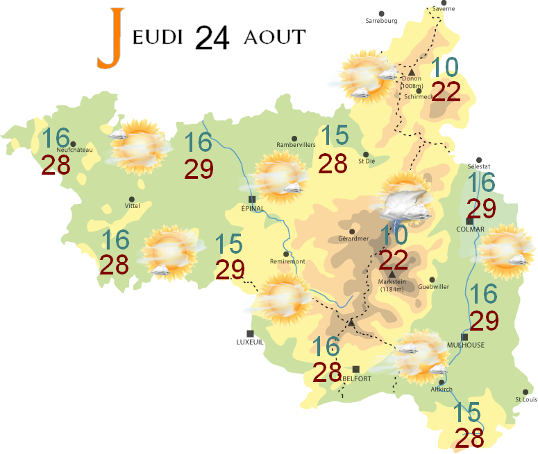 ► Demain après-midi, le soleil restera bien présent malgré le développement de nuages, en particulier sur le relief. Ces nuages pourront parfois donner une ondée ou un orage sur le relief justement, très ponctuellement le risque pourra déborder en plaine.