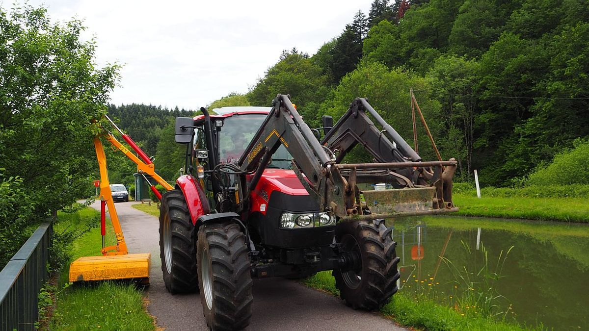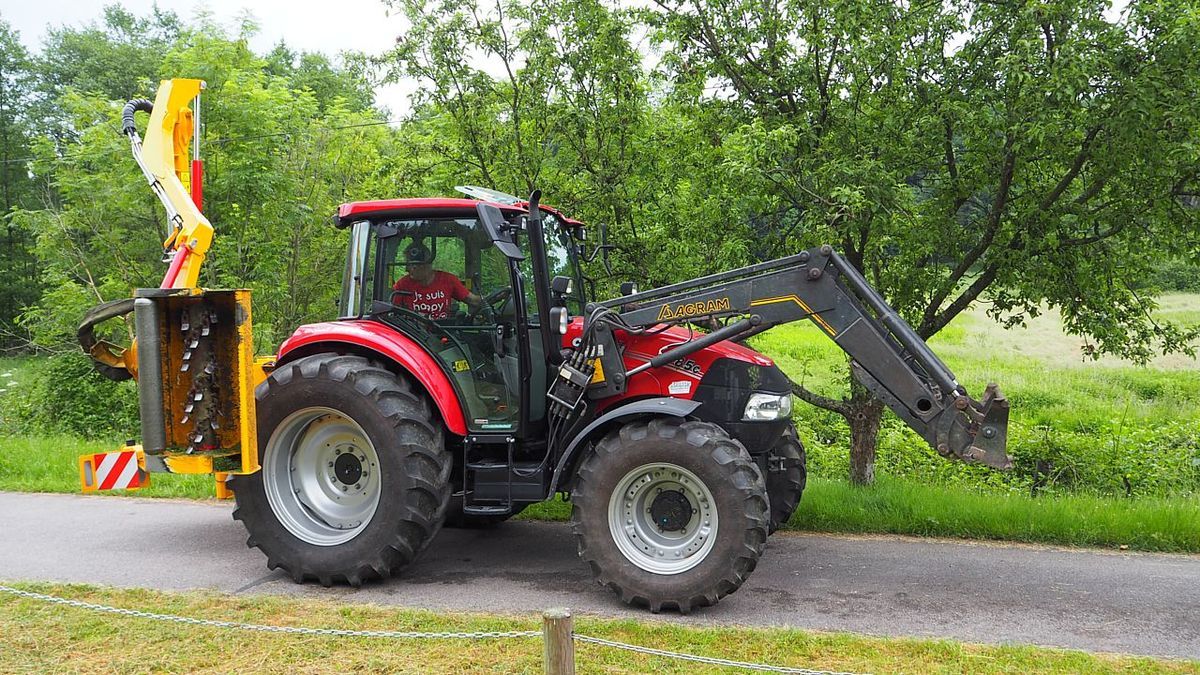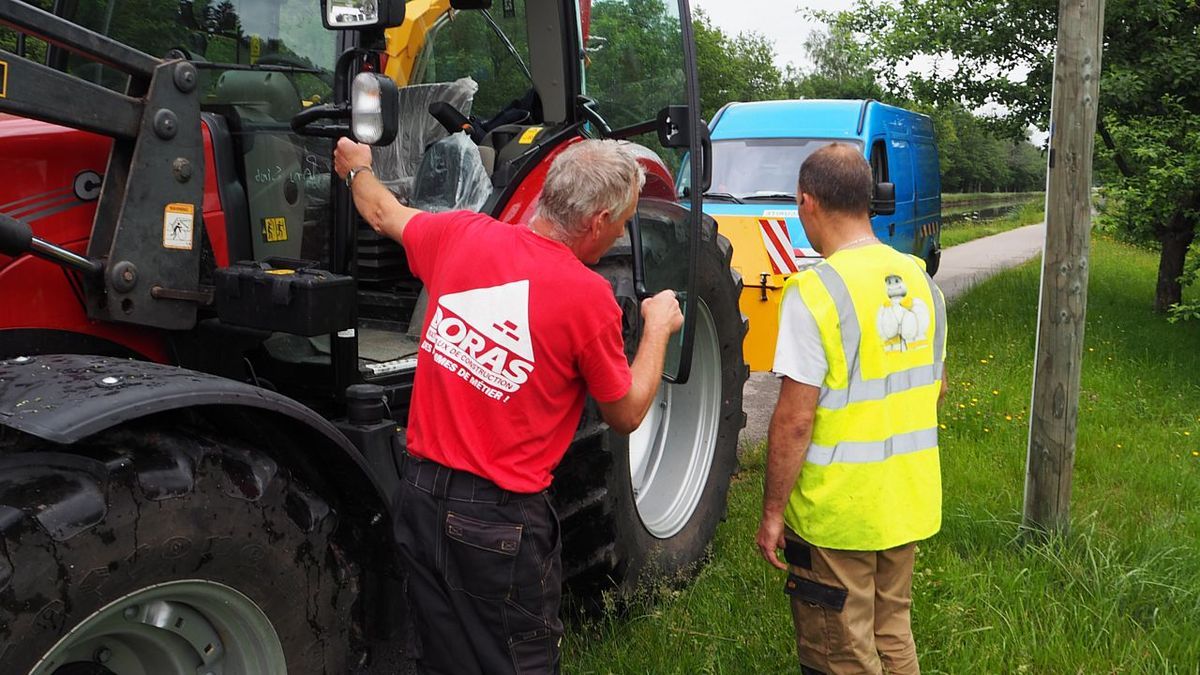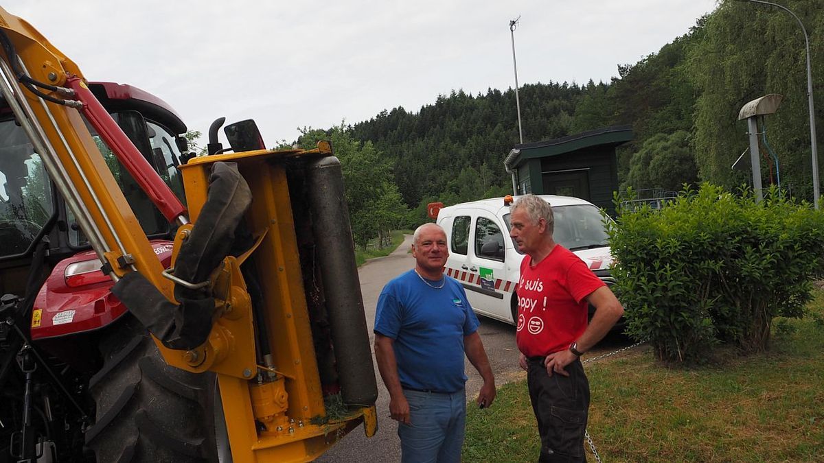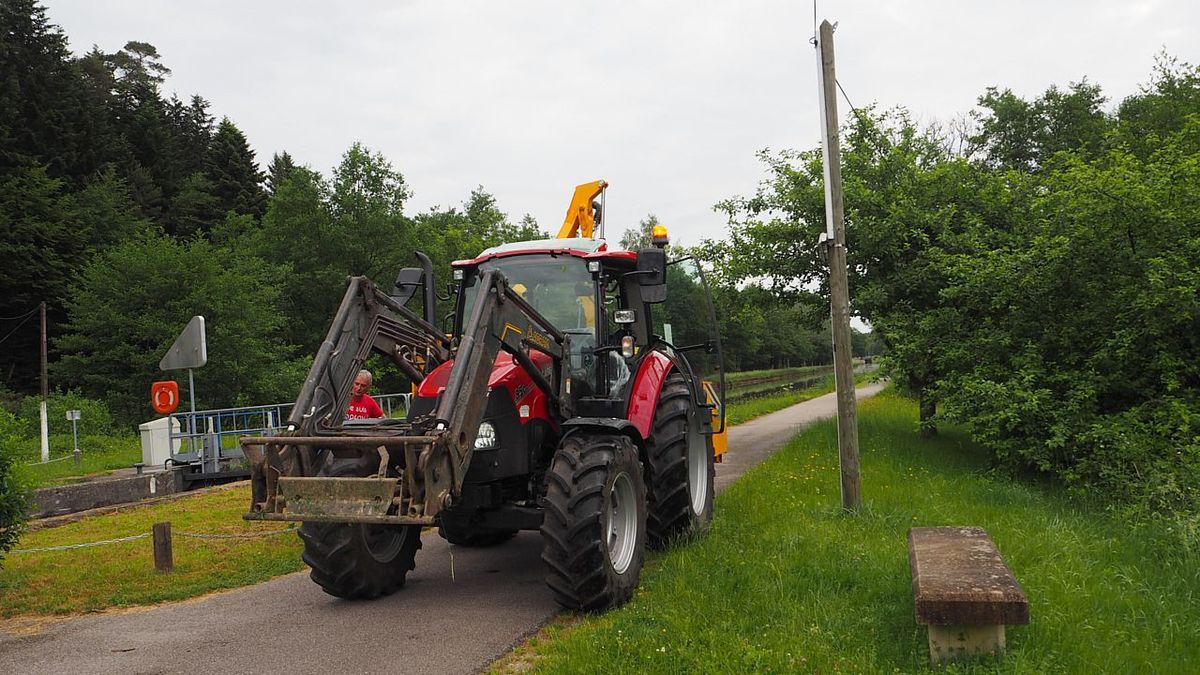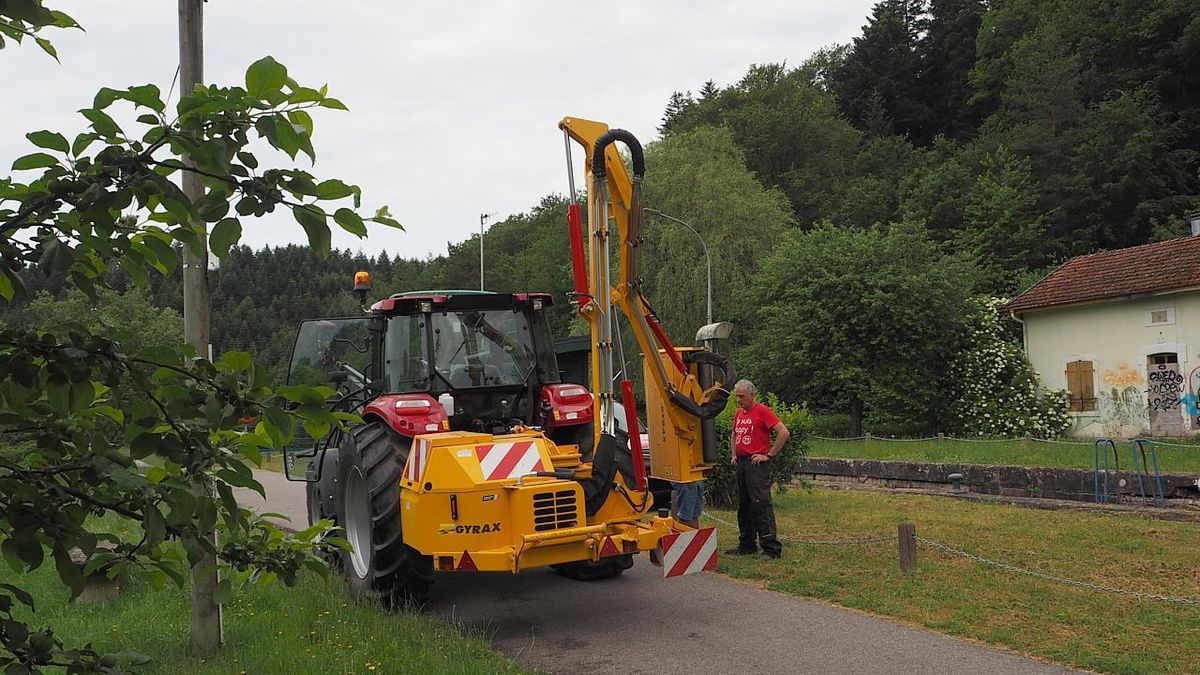 Pendant ce temps, Frédéric Jacopin le chef d'équipe, au volant du nouveau tracteur équipé d'une épareuse s'occupait des sections les plus accessibles. Ce matériel a été financé par le département et par l'état.