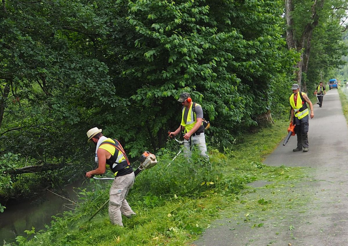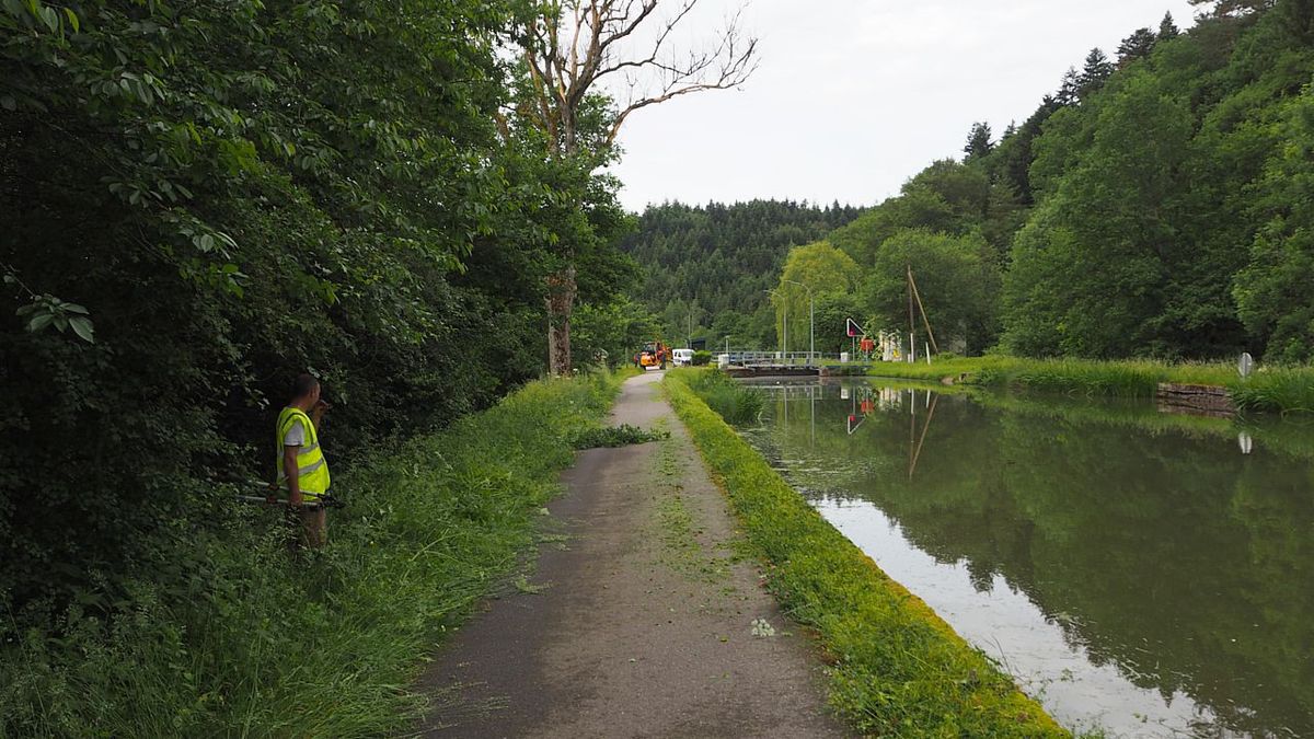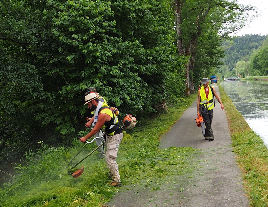 Cette année encore, Voies Navigables de France satisfaites de la qualité du travail fourni ont renouvelé le contrat avec la mairie de Les Voivres pour que le chantier d'insertion fauche les berges de la Voie Verte longeant le canal des Vosges.