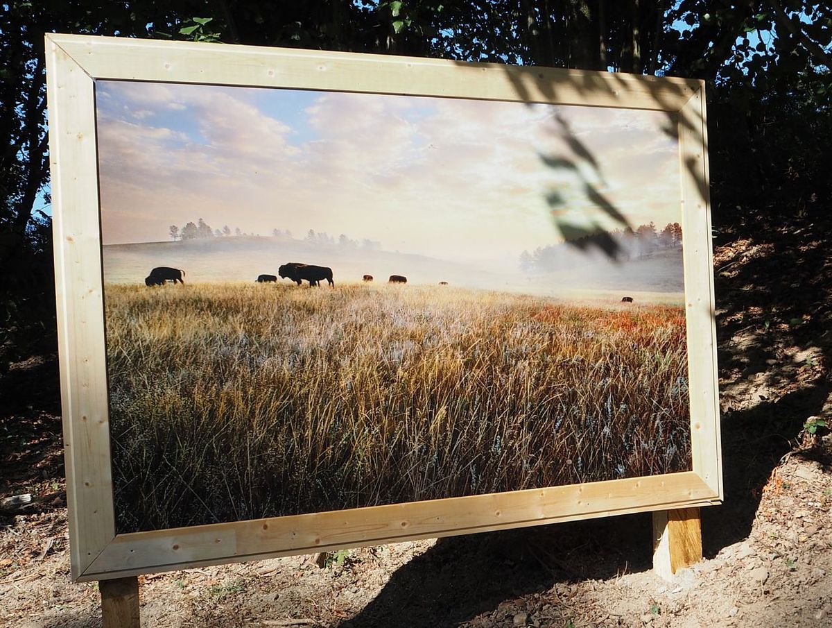 Mais dès maintenant l'association lance les invitations pour l'inauguration de l'exposition photo « Terres sacrées – des Vosges aux Amériques » le dimanche 16 septembre à 10 h 30. Les 26 panneaux venant des Sentiers de la Photos du Haut du Tôt sont maintenant posés aux abords de l’Étang Lallemand. Ce sont les clichés de Jim Brandenburg qui a travaillé 30 années au National Geographic. Avec l’œil d'un peintre il a immortalisé les loups, les cerfs et les bisons surpris dans leur milieu naturel.