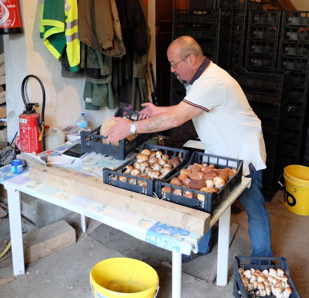 Il sait aussi quel est le mode de conservation le mieux adapté à chaque espèce. Il fait sécher les trompettes de la mort et les chanterelles, met au congélateur les cèpes et les pieds de mouton après les avoir légèrement blanchis. Par contre cette méthode ne convient pas aux agarics poussant dans les parcs. Ils noircissent et sont immangeables.