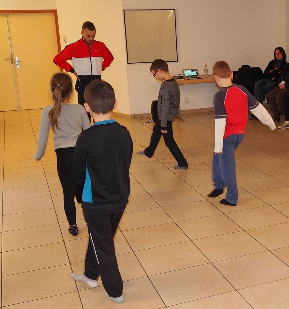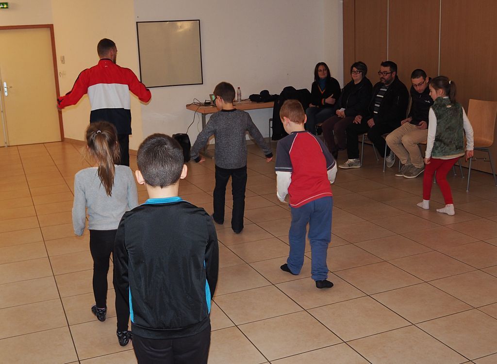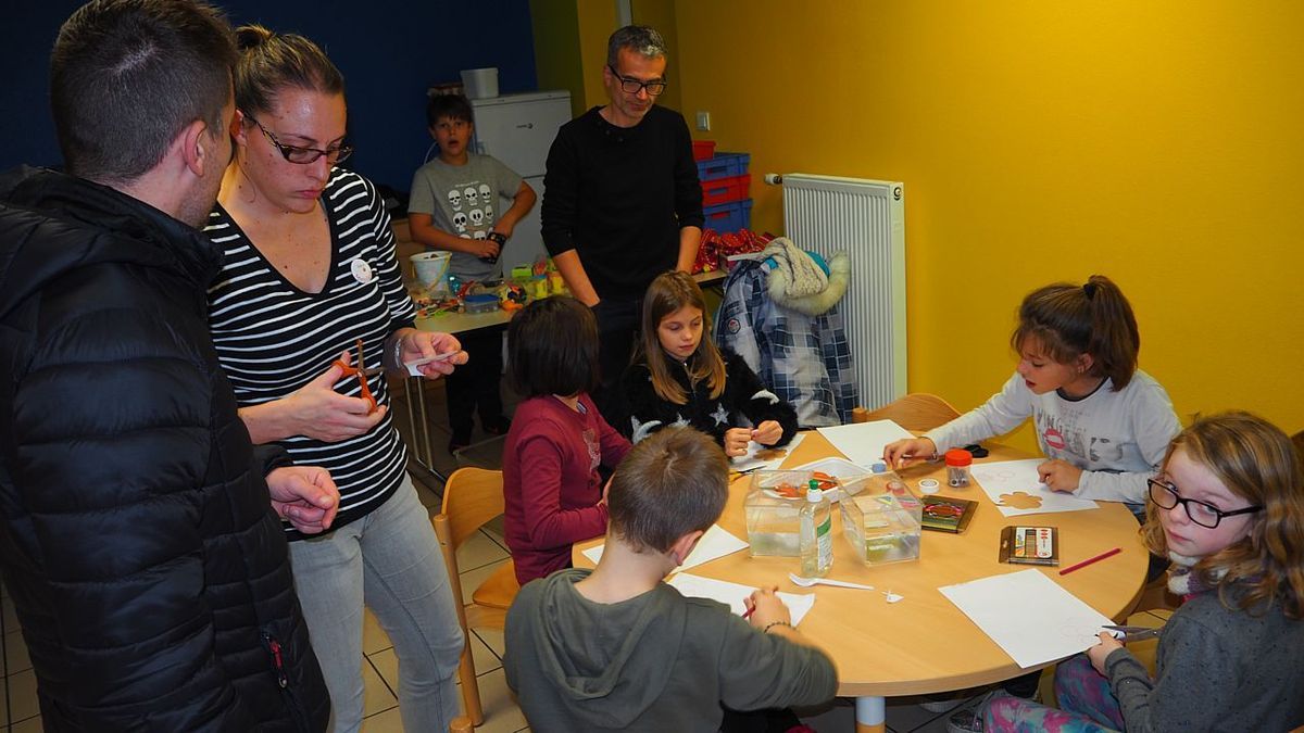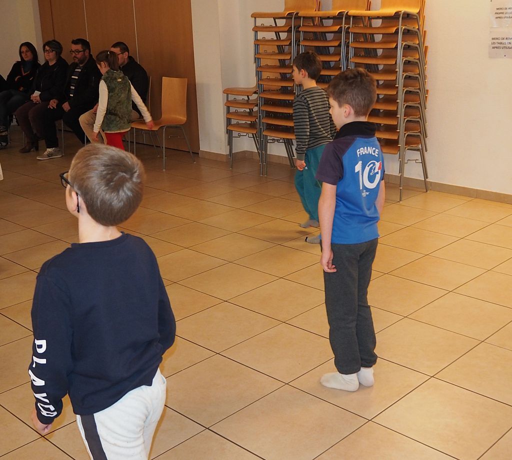 Jeudi, pour clôturer le trimestre, les parents avaient été invités à suivre ces ateliers afin qu'ils puissent voir par eux-mêmes ce que faisaient les enfants. Sous la responsabilité d'Olivier Villemin détaché de la Communauté d'Agglomération d’Épinal ceux-ci pouvaient tour à tour se relaxer en faisant du yoga, s'essayer à des jeux de stratégie, ou danser le hip hop à la salle des fêtes. A la cantine il y avait un atelier éducation à l'environnement. Un groupe apprenait avec une animatrice de l'Eaudici quels objets pouvaient ou non flotter sur l'eau.