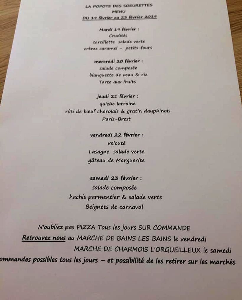 La popote des soeurettes vous communique son menu pour cette semaine