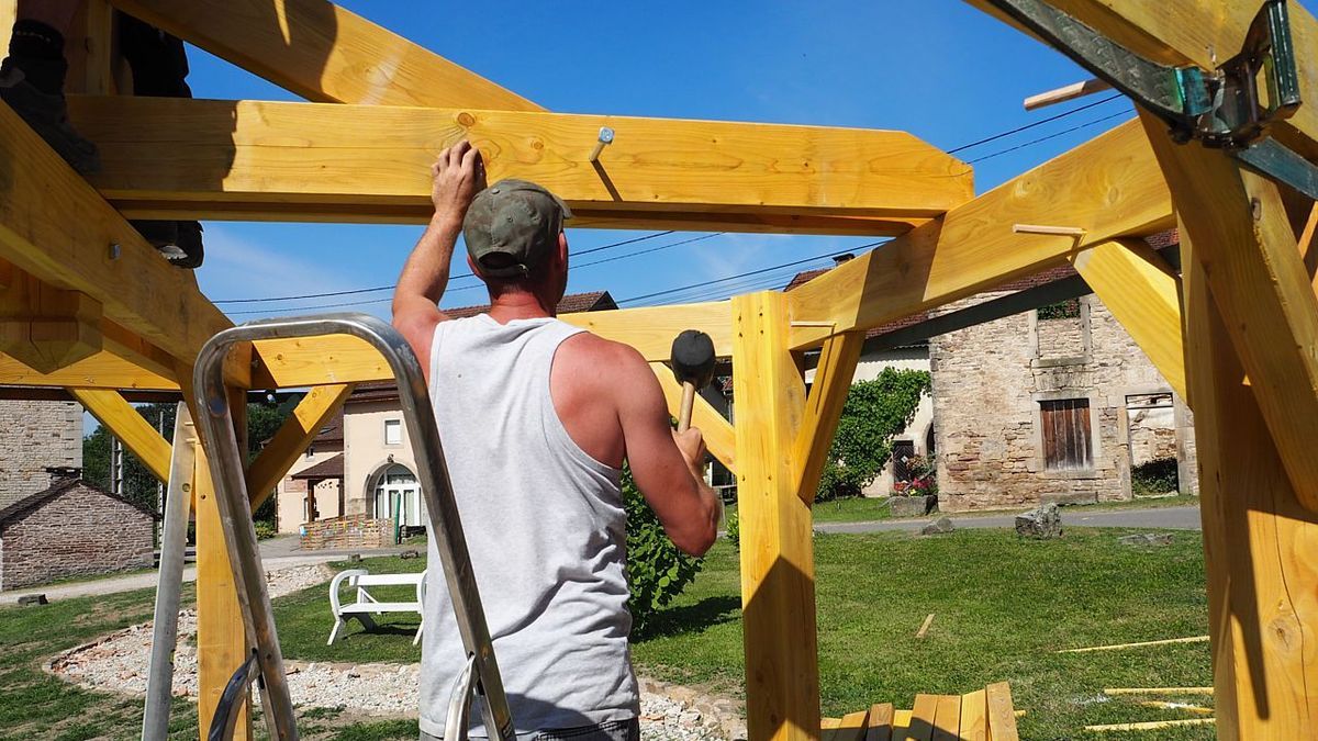 En fait, depuis le début de ce plan d’embellissement entrepris par la Transition d'Ici avec l'aide de la commune, personne ne savait vraiment comment nommer cet endroit. La parcelle, la prairie, le parc, la place, le jardin, toutes ces dénominations devenaient incorrectes au fur et à mesure que les travaux d'aménagement progressaient. Et ils avancent à grand pas. Les jours suivant la pose de la pierre de meule, la tonnelle a été montée. Pour cette raison il doit être correct de parler de square. Selon la définition, c'est généralement une petite place urbaine occupée par un jardin public.