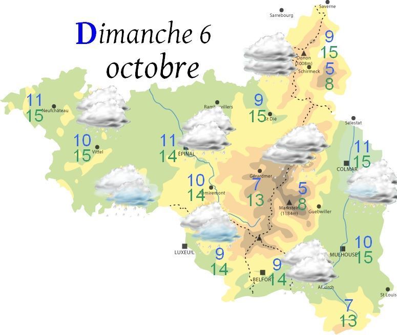 ► LUNDI : Le ciel reste bien nuageux en matinée avec encore quelques averses résiduelles. Le temps se dégage un peu pour l’après-midi avec le retour d’un temps de plus en plus sec mais aussi plus frais.