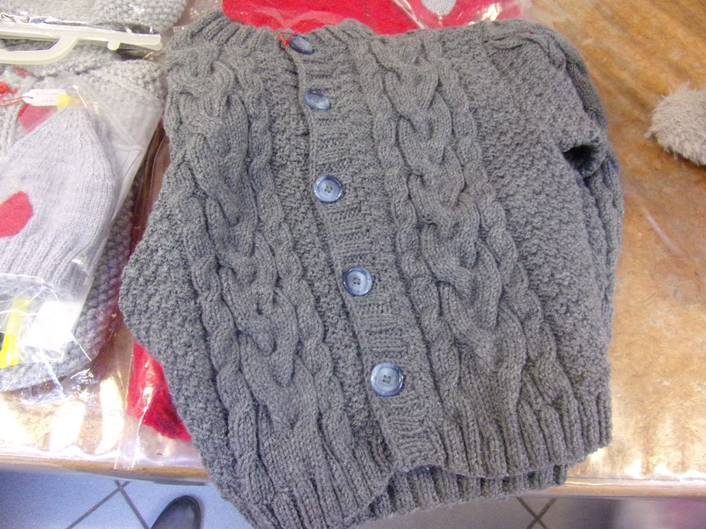 Même si on n'a plus de bébé depuis longtemps , on voudrait tout acheter : impossible de choisir entre les petits gilets avec des nœuds ou des torsades , les bonnets à oreilles ou façon Père Noël , les chaussettes , les petites robes .