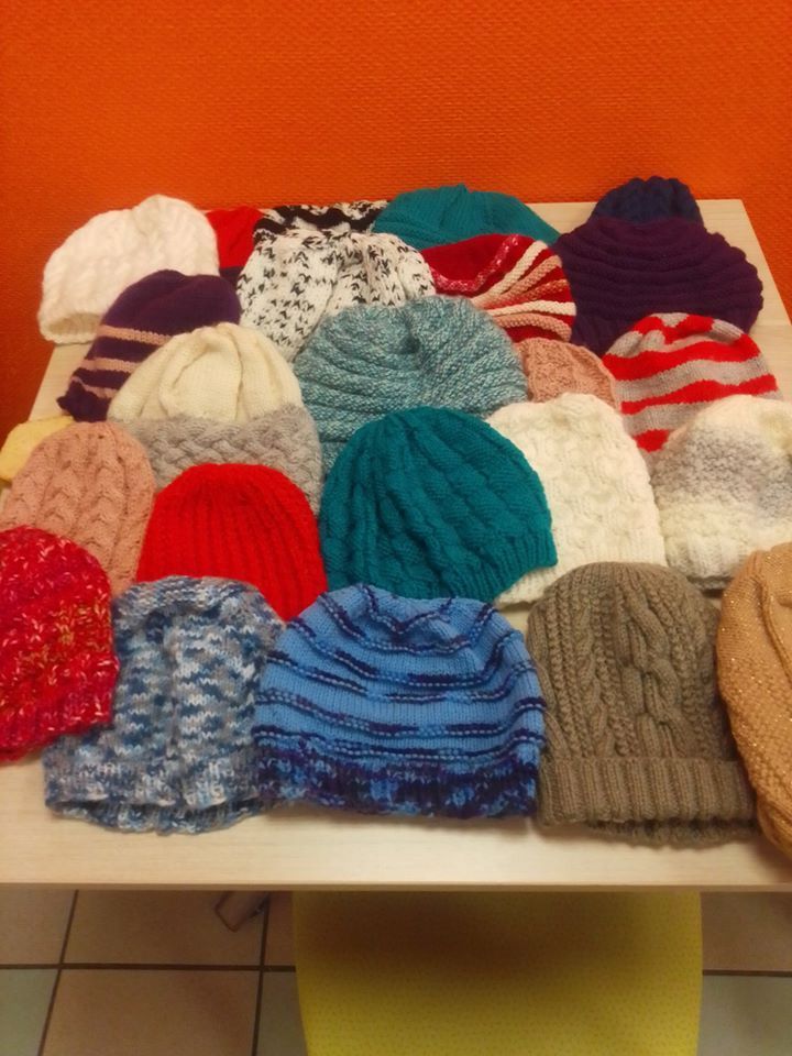 A l'approche de l'hiver, les bonnets de toutes les couleurs ont été très appréciés et certains ont trouvé tout de suite preneur parmi les patientes présentes.