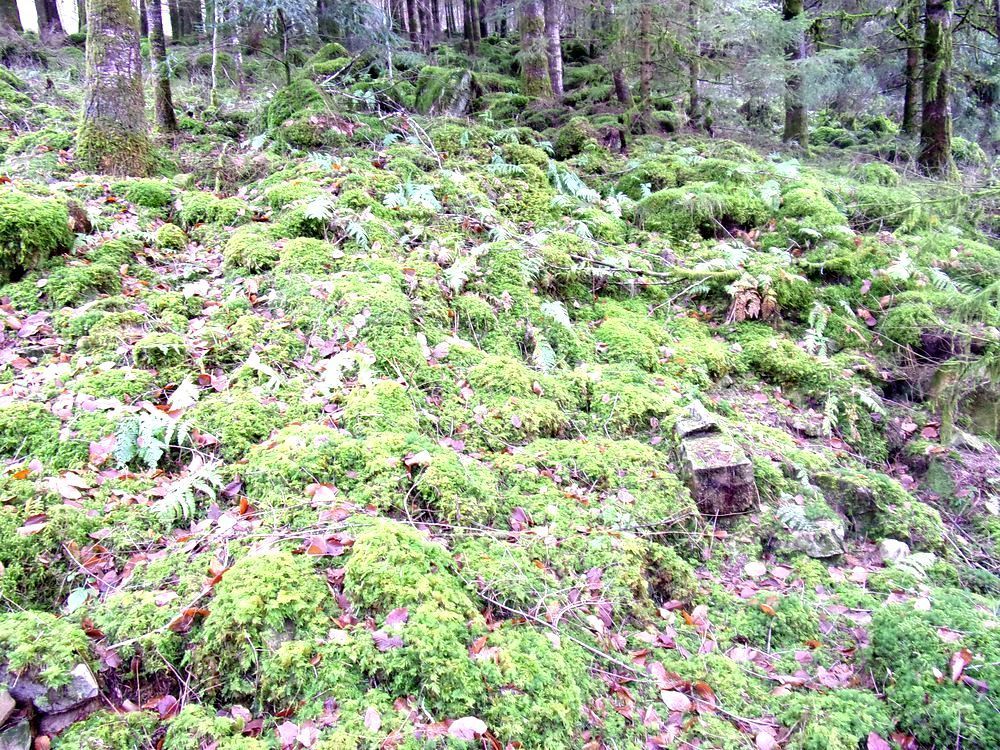 Dans le sous-bois la mousse a repris vie et recouvre les troncs d'arbres et les rochers pour le bonheur des oiseaux à la recherche des insectes qui s'y abritent.