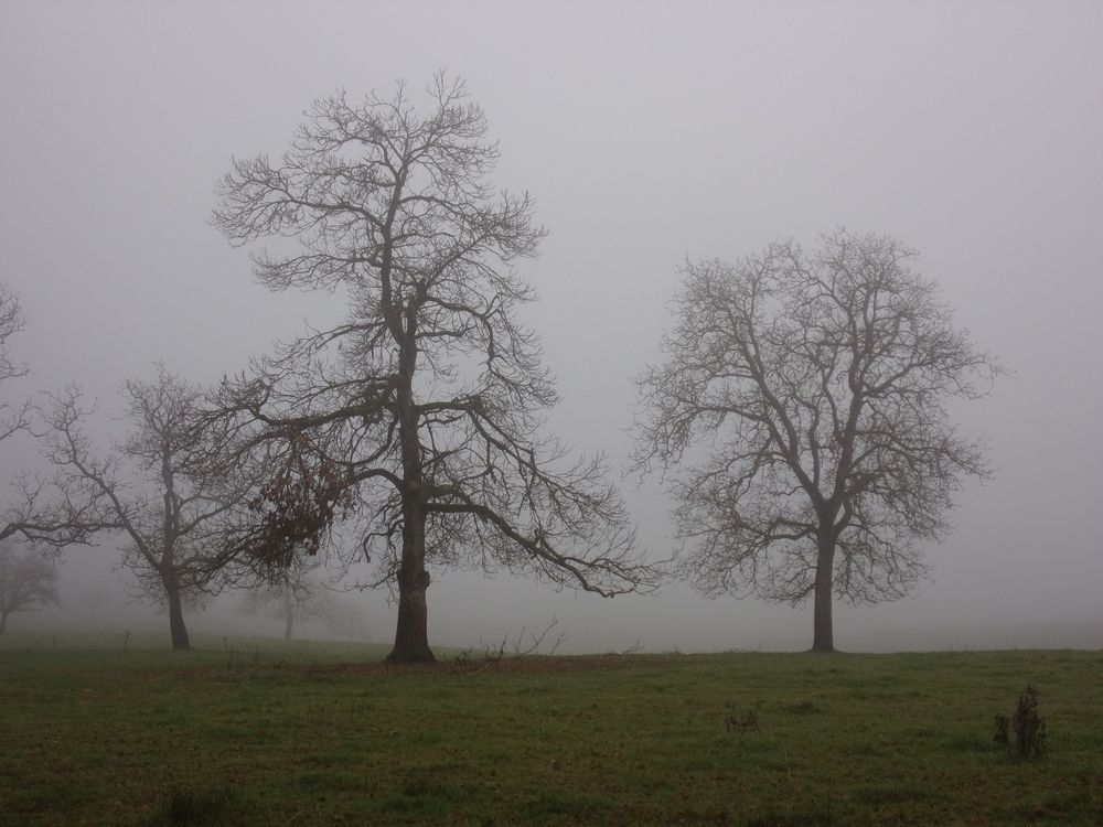 Donc sortie, direction le Grand Bois, plongé dans un épais brouillard ; atmosphère digne des meilleurs romans gothiques anglais ;