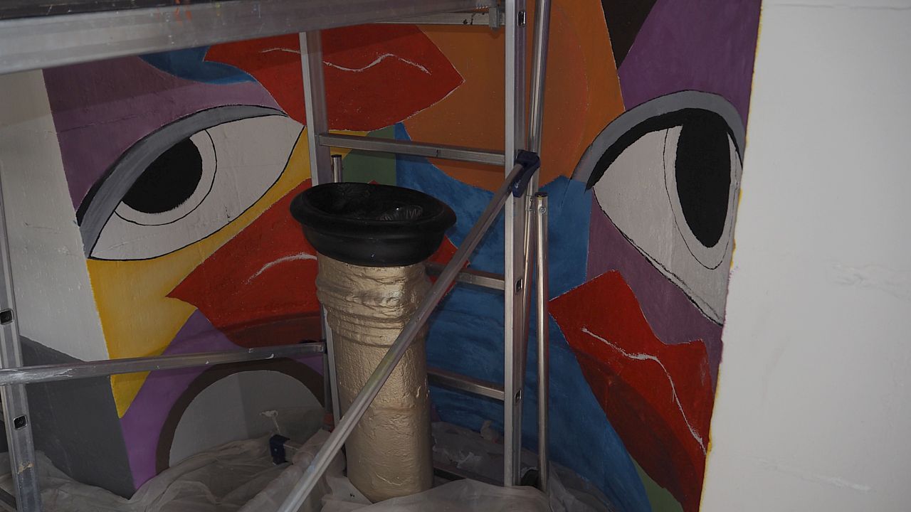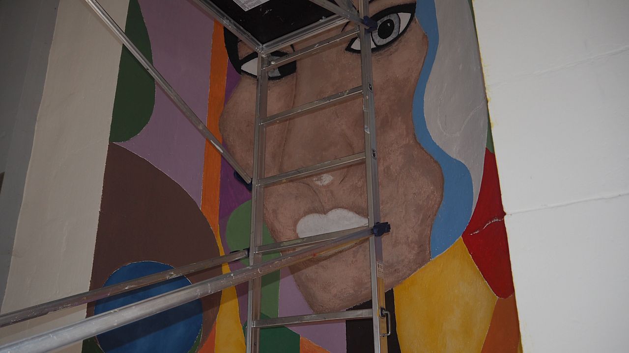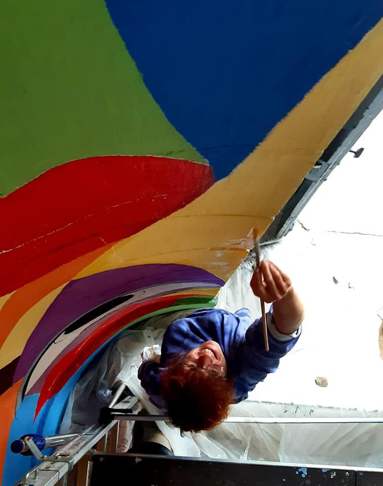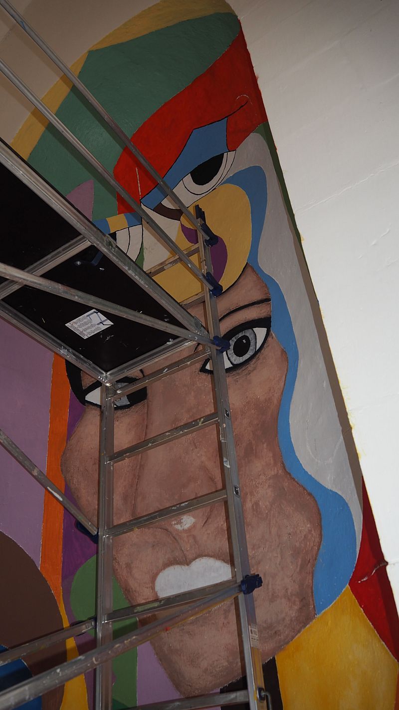 Depuis lundi, Monique Ferrry et Muriel Fransot sont revenues travailler sur la deuxième fresque qu'elles peignent à l'entrée de l'église. En une journée, les travaux ont bien avancés. Elles seront là toute la semaine.
