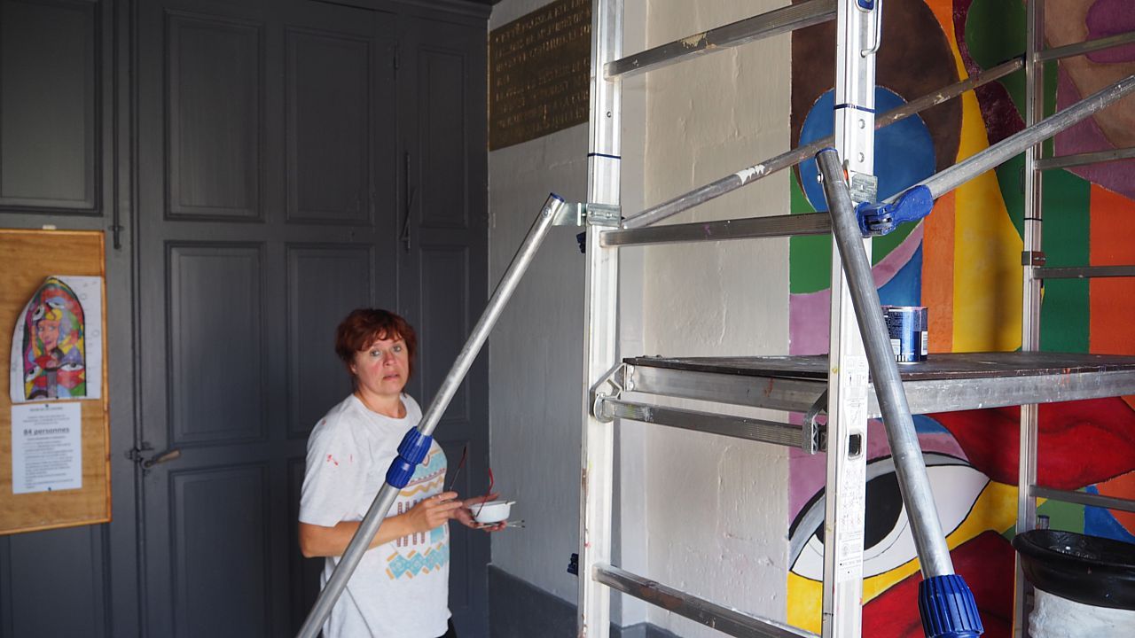 Mais cela n'empêche pas Monique Ferry et Muriel Fransot de travailler dans la bonne humeur. Après une journée passée à peindre, elles sont cependant fatiguées.