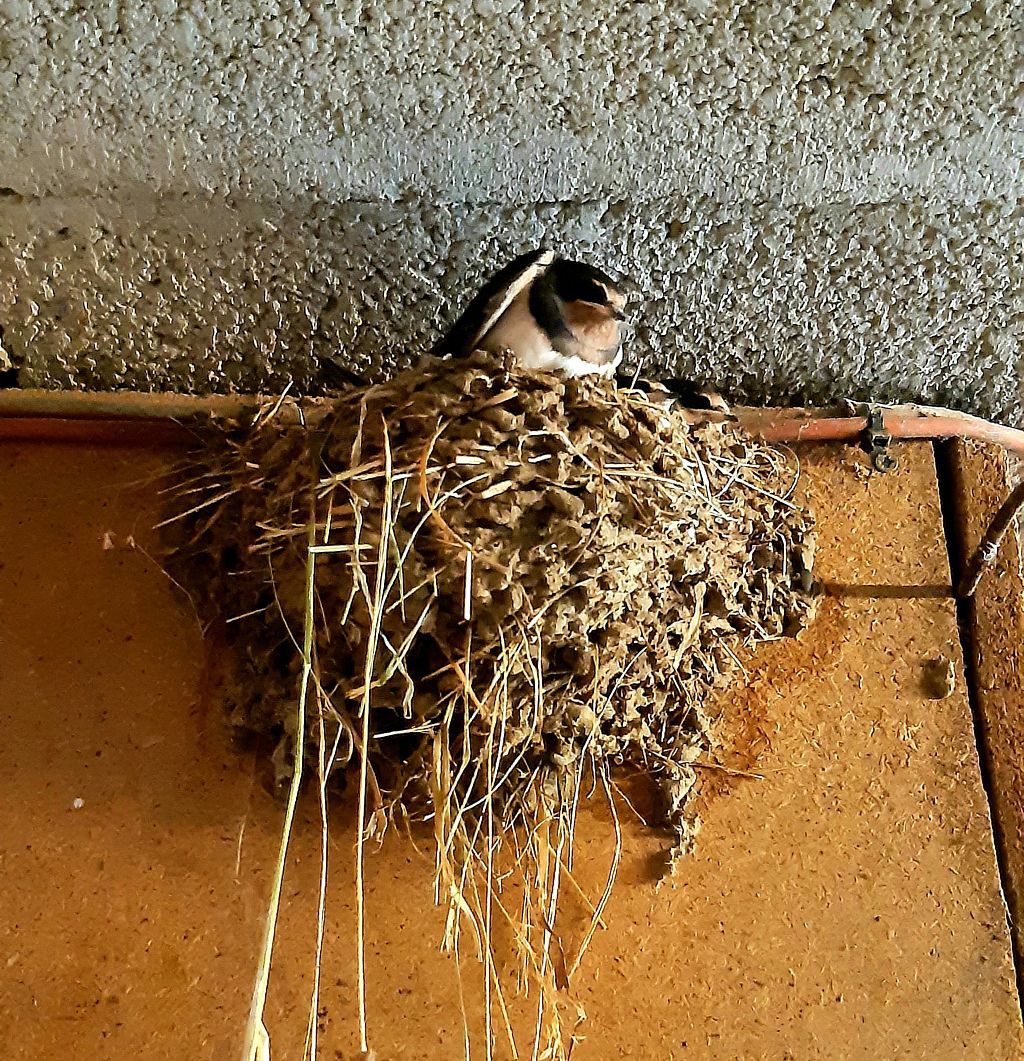 Les hirondelles ont choisi de construire un nid au droit de la porte d'entrée du restaurant du Pont des Fées! Bon choix pour la tranquillité des couvées !