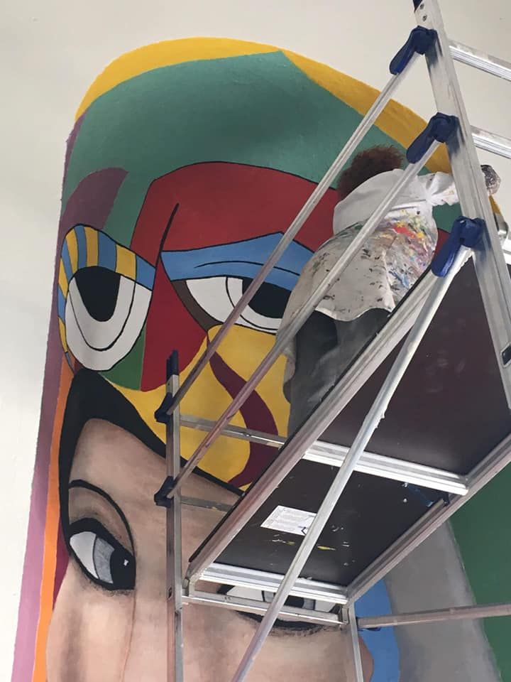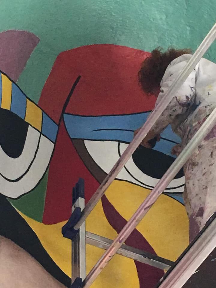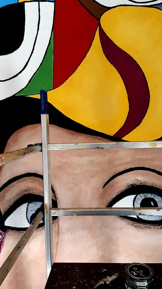 Aujourd'hui à 15h et des poussières, nous avons terminé de poser nos couleurs. Ensuite nous avons commencé à mettre le contour en noir autour des formes géométriques. Trop beau !!!!!! Nous sommes trop contente du résultat.